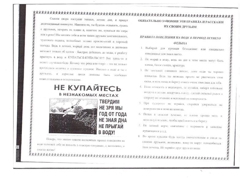 дети должны знать, что нельзя плавать без присмотра взрослых;