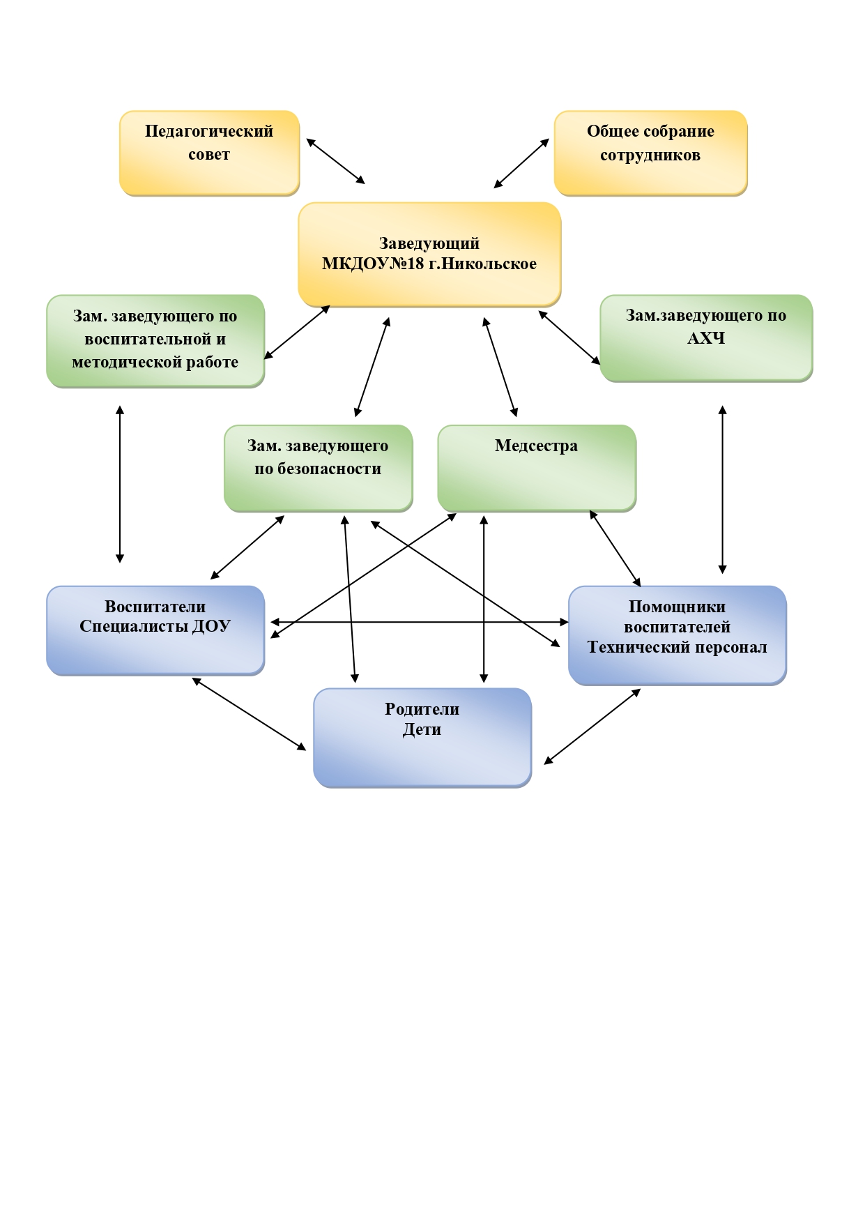 В МКДОУ №18 г.Никольское действуют следующие коллегиальные органы управления, к которым относятся: